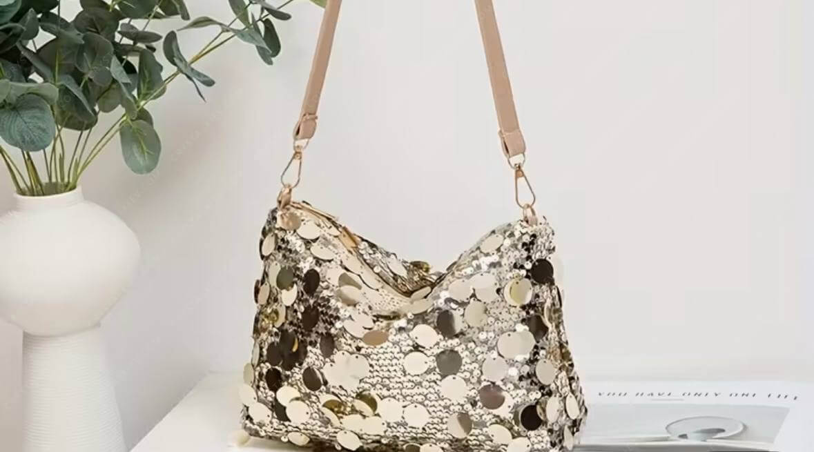 ✔ Використовуйте **нитку в тон паєтки або прозору волосінь** для непомітного кріплення.